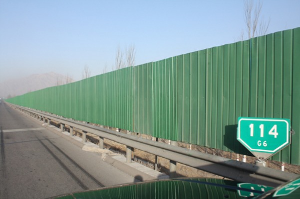 懷來縣新保安鎮(zhèn)前進街新村緊鄰京張高速北側(cè),長期受京張高速行車噪音影響,同時經(jīng)常發(fā)生個別司機翻越護欄進入該村和兒童翻越護欄進入高速公路玩耍等安全隱患。應當?shù)卣螅緵Q定在該路段護欄外側(cè)增設遮擋板。該項目于201011月完成立項審批,因工期緊張,經(jīng)研究決定委托石家莊路安交通工程有限公司為施工單位,工期為30天。在公司和施工單位的共同努力下,全部工程于1213如期完成,共安裝遮擋板900