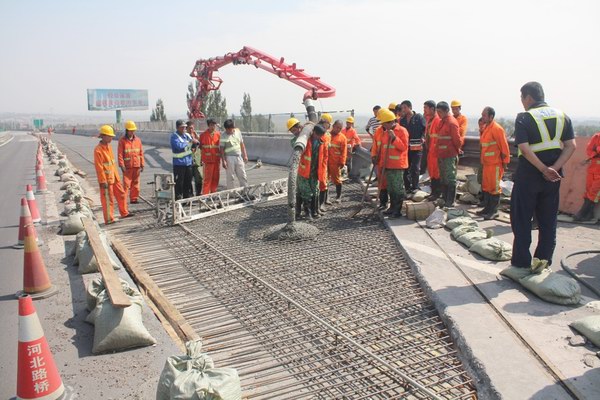 在項目實施過程中采取全過程監(jiān)測,通過監(jiān)測數據指導施工。在項目施工中嚴格質量、進度和安全管理。監(jiān)理工程師全過程旁站,發(fā)現問題要求施工單位及時整改。公司項目工程師每天對施工過程進行督導和檢查。為確保施工安全,加大了交通管制協(xié)調力度。橋面施工中由高速交警、路政做好高速公路的交通管制,橋下由地方交警、路政配合做好交通疏導,車輛分流處設值守點,并委托地方路政協(xié)調解決橋下有關商戶的影響事宜,有效確保了施工進度和安全。(工程養(yǎng)護部 李強)